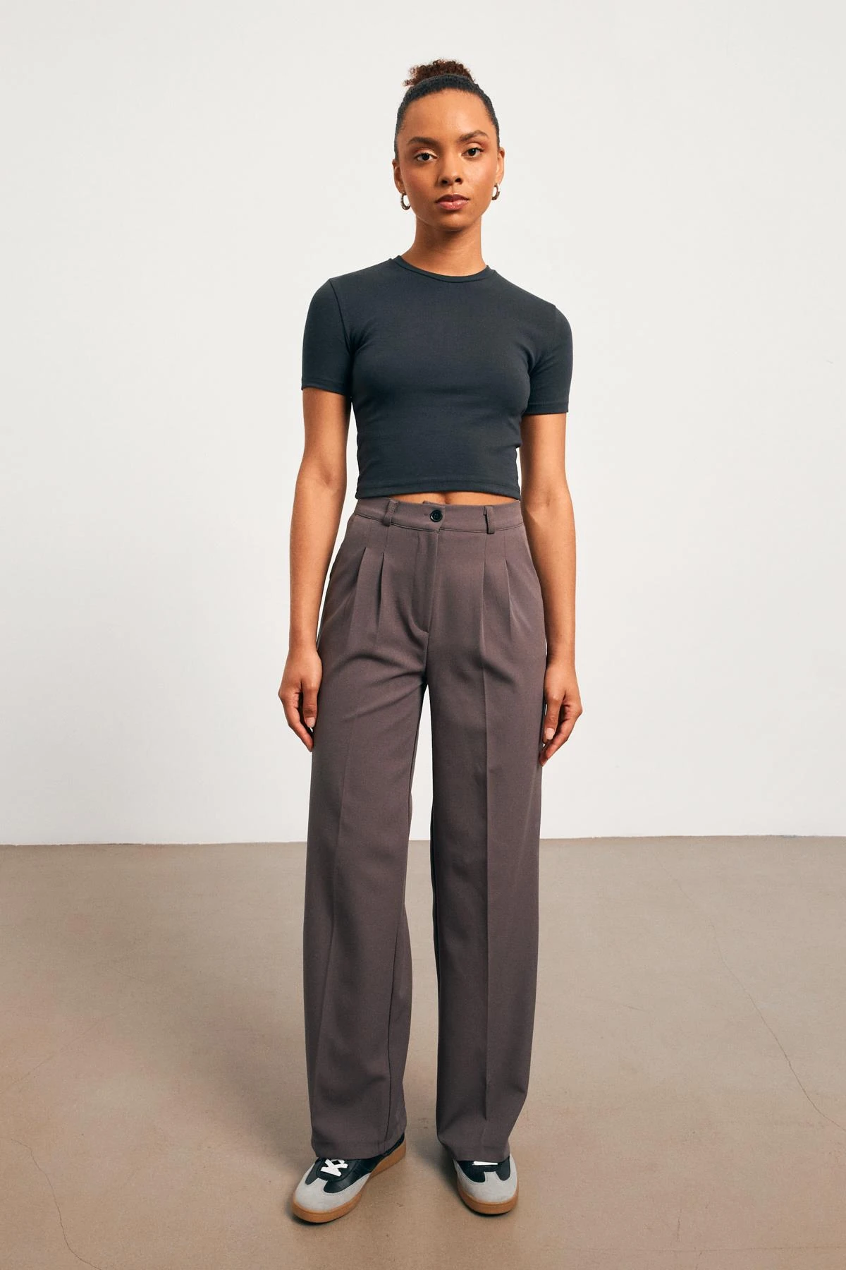 Yüksek Bel Antrasit Kadın Palazzo Pantolon